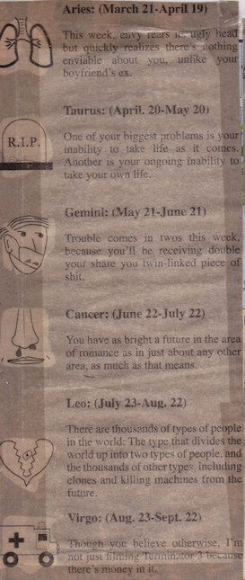 Their purpose: to amass gold coins for those in their herd that need it most. Like chipmunks collecting acorns they take their treasure to their hidden lair, but not before handing out a reward to their beguiled prey; a newspaper. Perfectly suited for lining the bottom of a budgie cage, this newspaper can also be read.