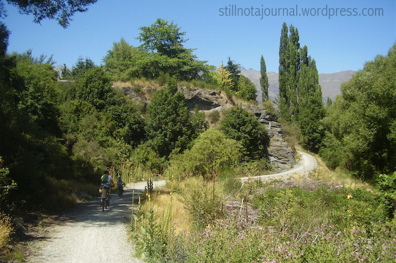 We knew we were getting close, but after a cool little tunnel we had another climb – we rode overlooking Whitechapel Rd, the vineyards of the Gibbston Valley and The Remarkables mountain range. So many wineries! You could do a cycling wine tour except for the drawback of getting smashed and still having to cycle yourself around. On high tracks with no fences next to fricken deep gorges full of sharp schist and glacier water where you’d never be found again. But again, at least there’s no crocs.