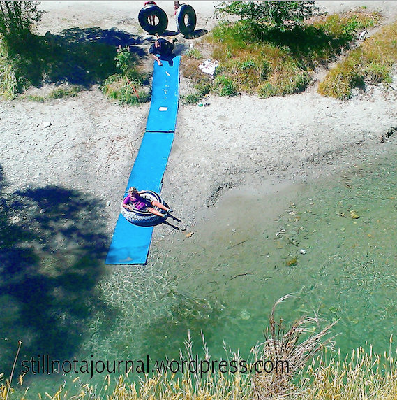 I was glad to finish with my favourite bit – under the sun dappled green canopy next to the river. It was now in direct sunlight and busy with people – sunbaking on the riverbanks, walking with prams, cycling, running, innertubing, swinging on the rope swing.