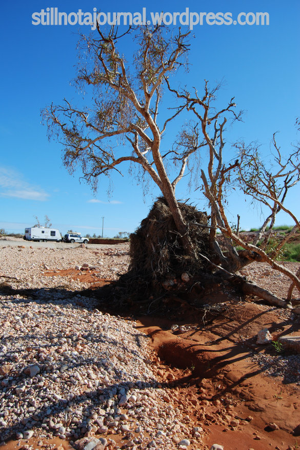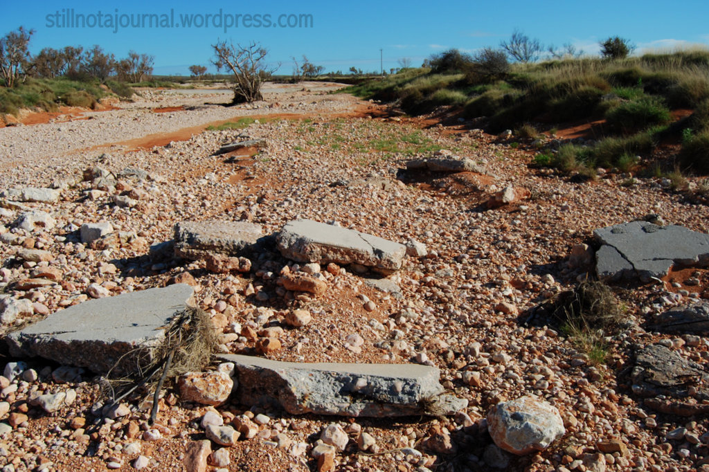 It was cyclone season only a month before, and Exmouth got hit with TWO cyclones right at the end of it. On March 13th Cyclone Olwyn, a strong Category 3, which also hit Carnarvon, mucking up all the plantations and wrecking the homestead at Boolathana Station, among other crimes blew into town with a vengeance. Exmouth got a year’s worth of rain (250mm) in about 2 hours and roads were cut all over the place. Then Cyclone Quang, a bit of a strange Cat 1, hit on April 27th.