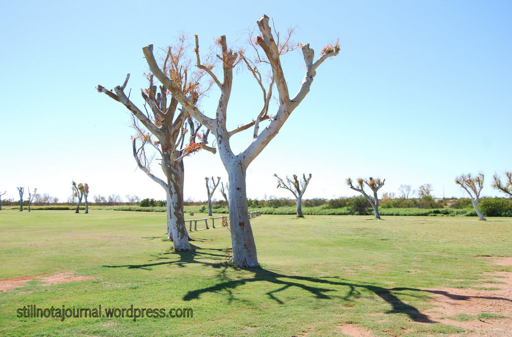 - The gum trees around the oval are the tallest things in town… or rather they were until that bitch Olwyn came.