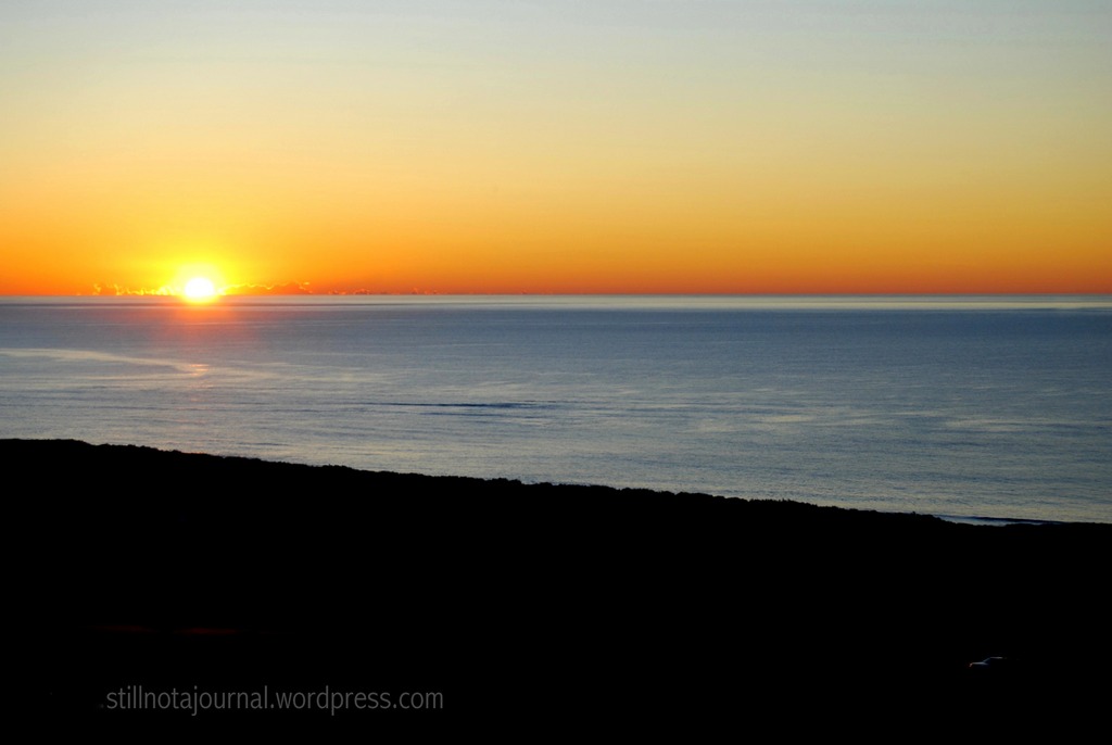 Sunset has always been my favourite time of day, and I have a particular love of sunsets over the ocean. It’s my meditation; I love the late rosy sunlight, the rhythmic pounding of the waves on the shore, and the lovely mindless tranquillity it brings me. Growing up I got to enjoy hundreds of sunsets over the Indian Ocean: from the beach, from the water tower, from the end of the jetty, from a handy roof.